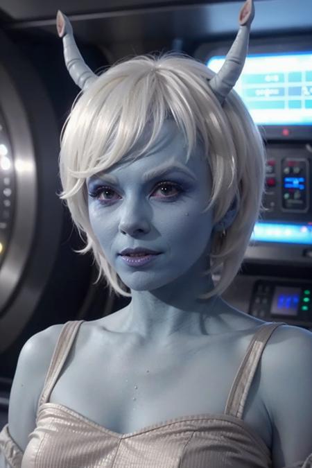 | Physical Description | Like most of her kind, Piraa sports sensitive antennae, lush blue skin, and shimmering platinum silver hair. She is the embodiment of the phrase “Size does not matter.” Life as an engineer kept her spry and flexible, something she maintains only now through regular visits to the gym. Her figure is not unpleasing to the eye, and she is long past the days of trying to attract a bondsmate. |